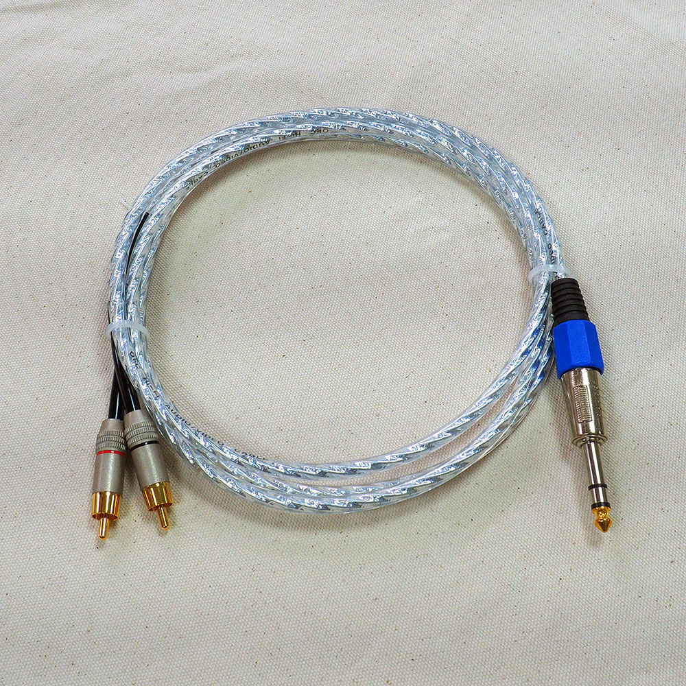 TDCawa46326 2RCA公對6.3立體公1.8公尺透明發燒線